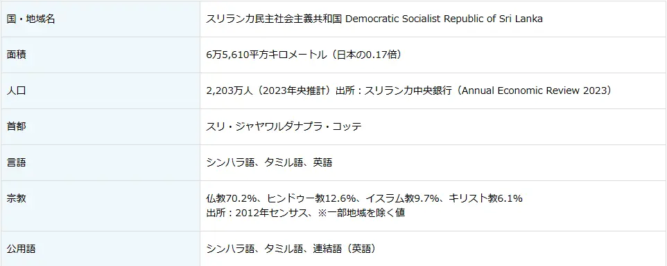 スリランカ民主社会主義共和国(通称:スリランカ)は、インドの南東に位置する島国で、人口は約2,200万人(2024年時点)です。首都はスリ・ジャヤワルダナプラ・コッテですが、経済や行政の中心地はコロンボです。公用語はシンハラ語とタミル語で、英語も広く通用しており、教育やビジネスの場では英語がよく使われます。