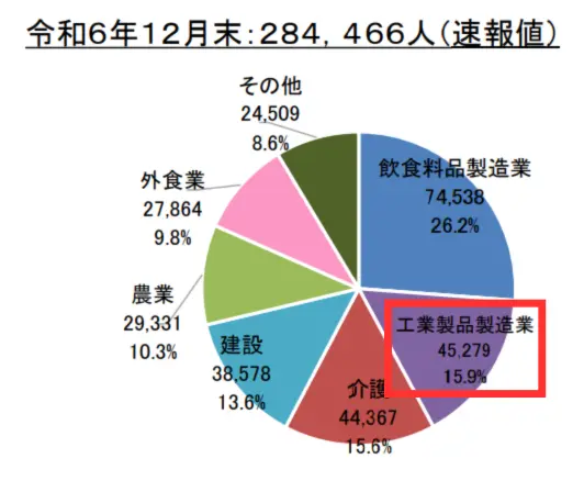 現在、ベトナム人特定技能人材は、製造業界における即戦力・安定人材として圧倒的な存在感を持っています。1号在留数は2024年12月時点で132,920人と、特定技能全体の約47%を占める最多国籍となっており、そのうち工業製品製造業分野にも約27,000人が従事しているなど、製造業での採用実績は既に十分です。