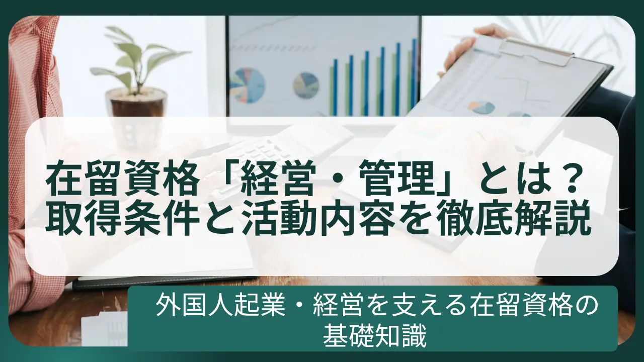 「経営・管理」とは、外国人が日本国内で事業を経営し、またはその事業を統括・管理する活動を行うための在留資格です。