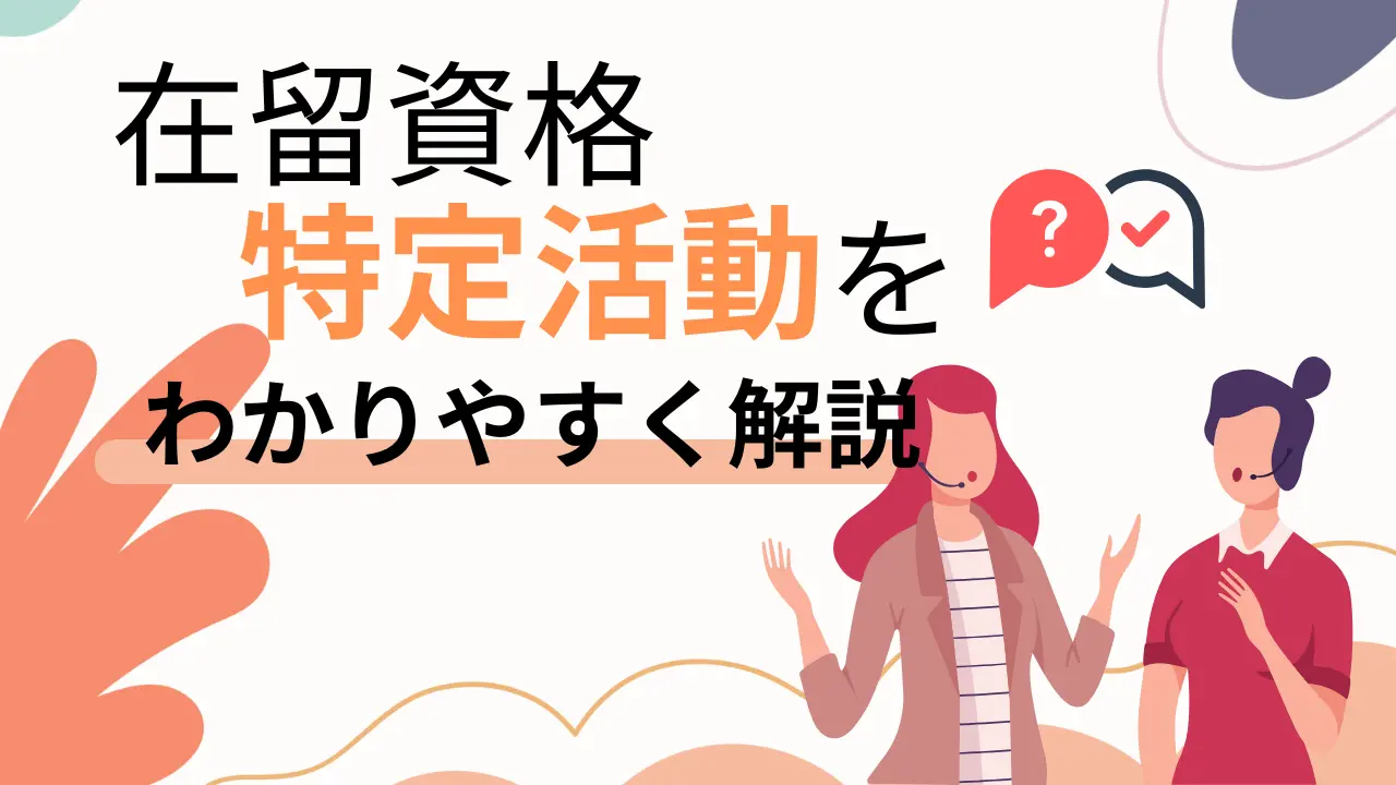 在留資格の中でも「特定活動」は、内容が分かりにくい資格としてよく挙げられます。