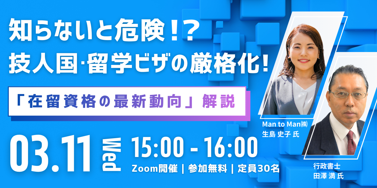 こうした状況を踏まえ、2026年3月11日(水)に在留資格の最新動向を整理する無料ウェビナーを開催します。本記事では、その背景と内容をご紹介します。