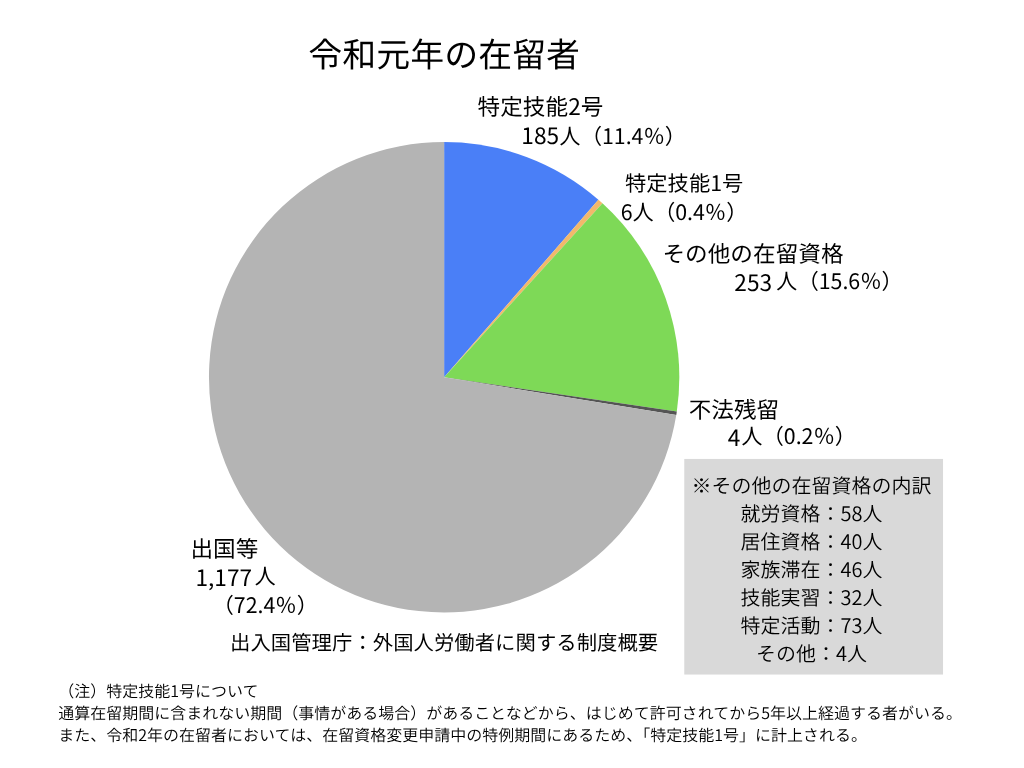 - 特定技能2号:185人(11.4%)