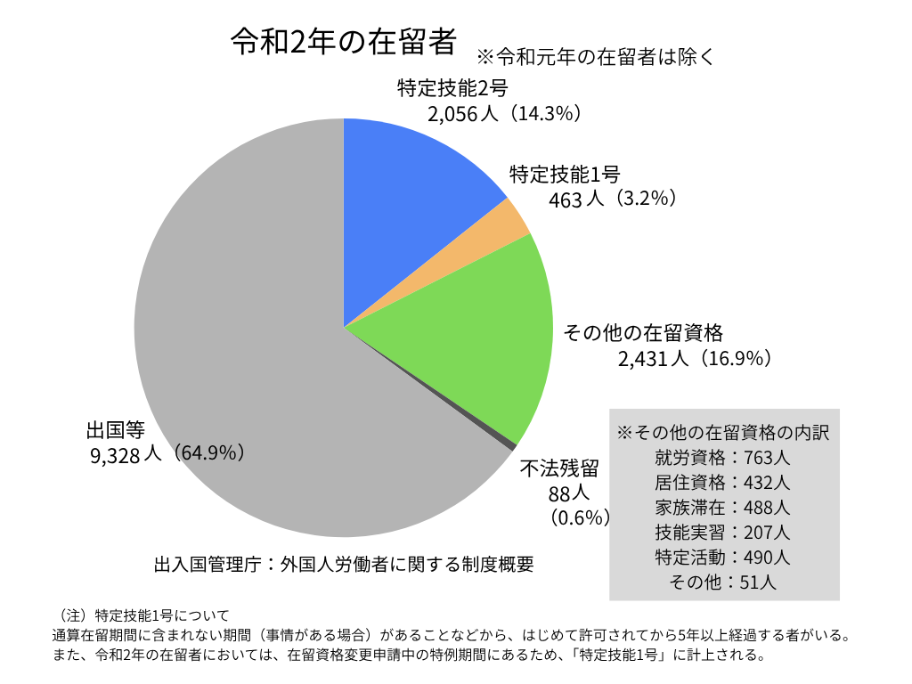 続いて、令和2年に特定技能1号だった人のデータを見てみましょう。制度が認知され、人数が多いことも注目すべきポイントです。