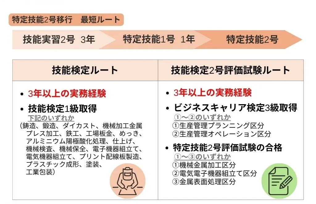では、どうしたらで特定技能1号から2号へ移行できるのでしょうか?今回は、少々複雑な製造業分野の2号への移行方法についてご説明します。