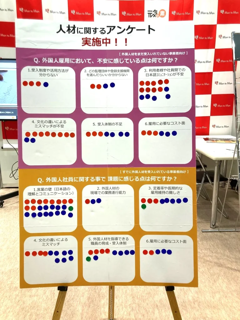 今回の展示会では、上記の他「外国人雇用に興味はあるが、具体的にどう進めればよいか分からない」という事業者様が多いと感じました。また、どの登録支援機関を選べば良いか迷っている方も目立ちました。