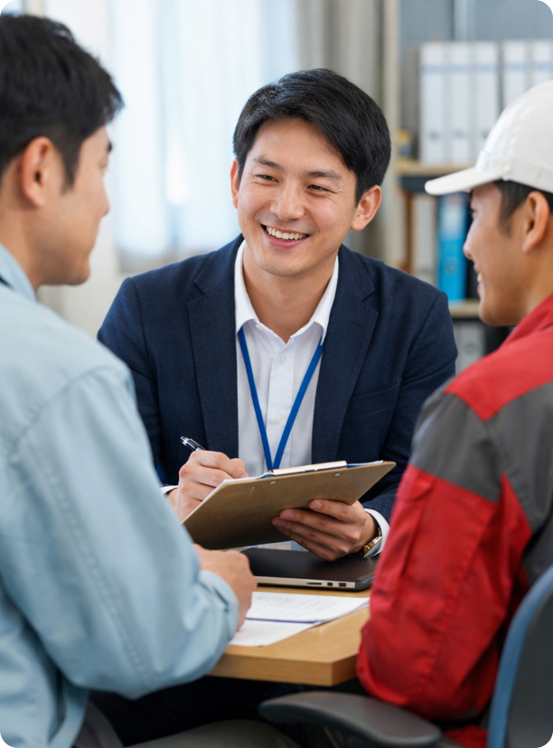 実際に特定技能・技能実習の現場に携わってきた通訳スタッフが担当します。